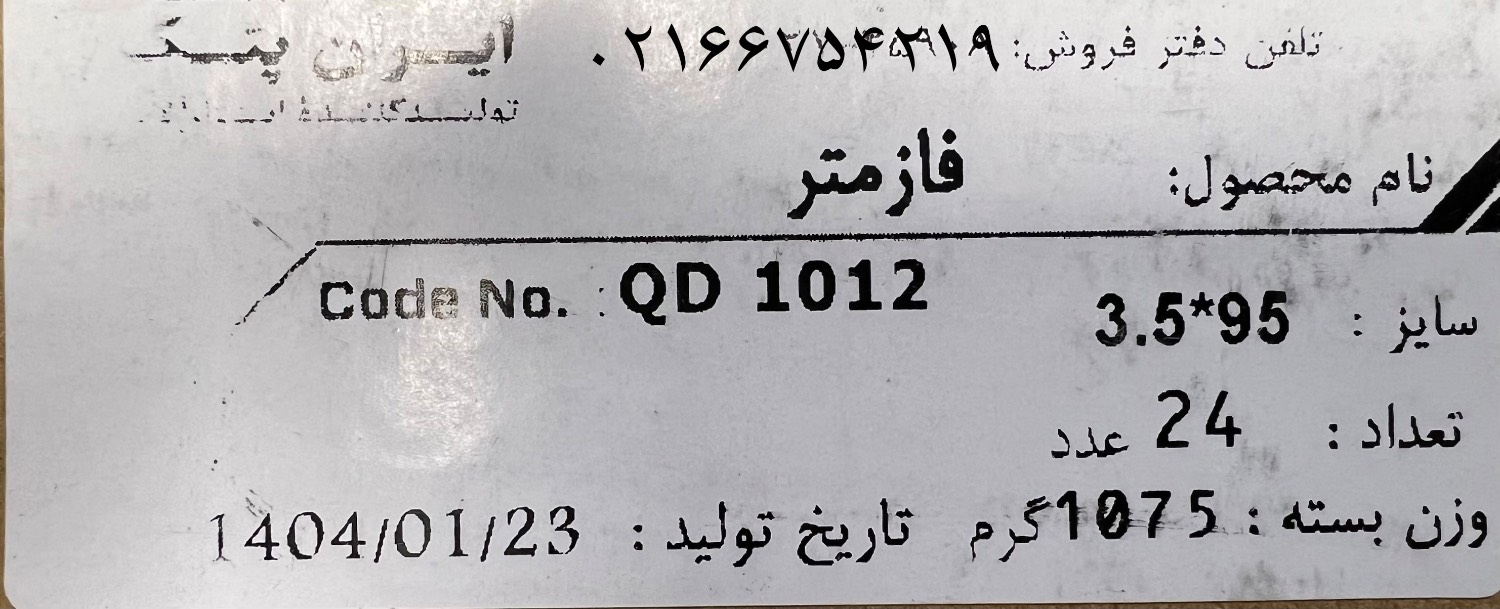 ولتاژ ورودی: - فازمتر ایران پتک - سایز طول : ۱۹ سانتی متر - جنس دسته از پلاستیک قشرده و مقاوم - دارای سری دوسو - قابل استفاده برای ولتاژ ۱۱۰ تا ۲۳۰ ولت - محدوده فرکانس ۵۰ تا ۵۰۰ هرتز - دمای عملیاتی: منفی ۱۰ تا مثبت ۵۰ درجه سانتیگراد